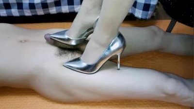 神罚女王超高质量裸色高跟波点油亮肉丝隔板鞋交踩踏足交!